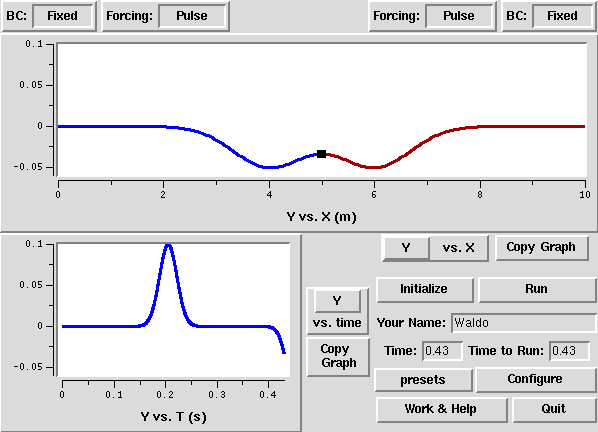 The ``Versus T'' plot gets longer and longer as you run. At some point, this begins to slow down the rest of the program: replotting thousands of points each time step can get slow. To avoid this, the plot is automatically pruned to no more than NMAX points (currently 1000): this is substantially larger than the resolution of the plot, but can cause noticable roughness under zooming or after long runs.